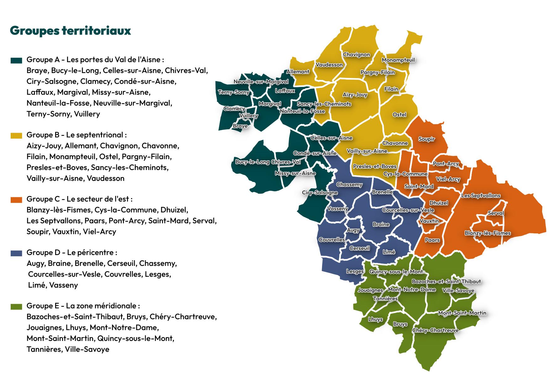 Chaque groupe territorial – Les Portes du Val de l’Aisne, Le Septentrional, Le Péricentre, La Zone Méridionale et Le Secteur de l’Est – s’est réuni sur son secteur, afin d’échanger à une échelle locale et concrète.